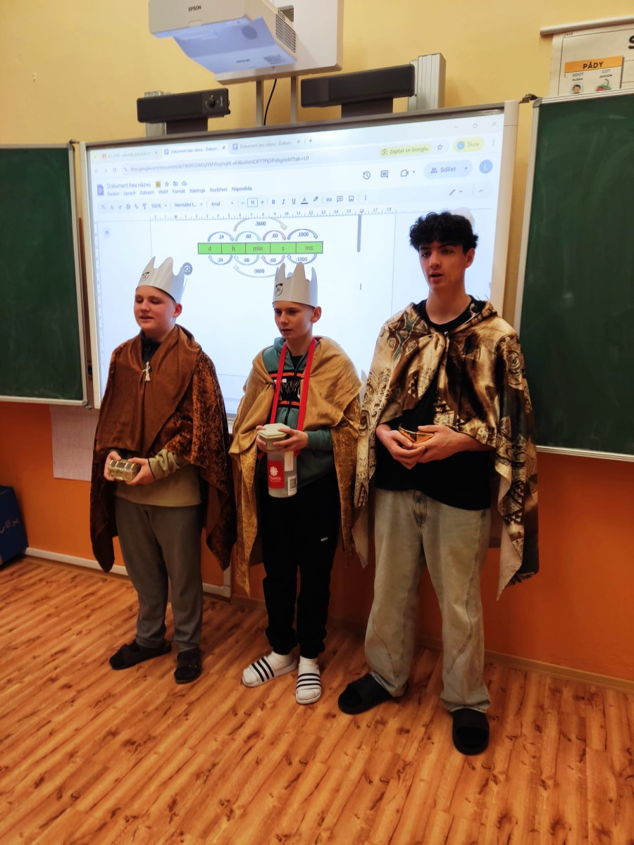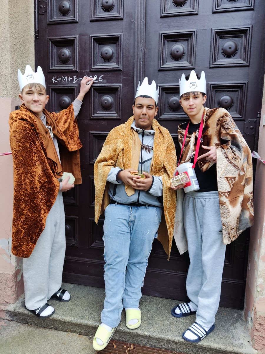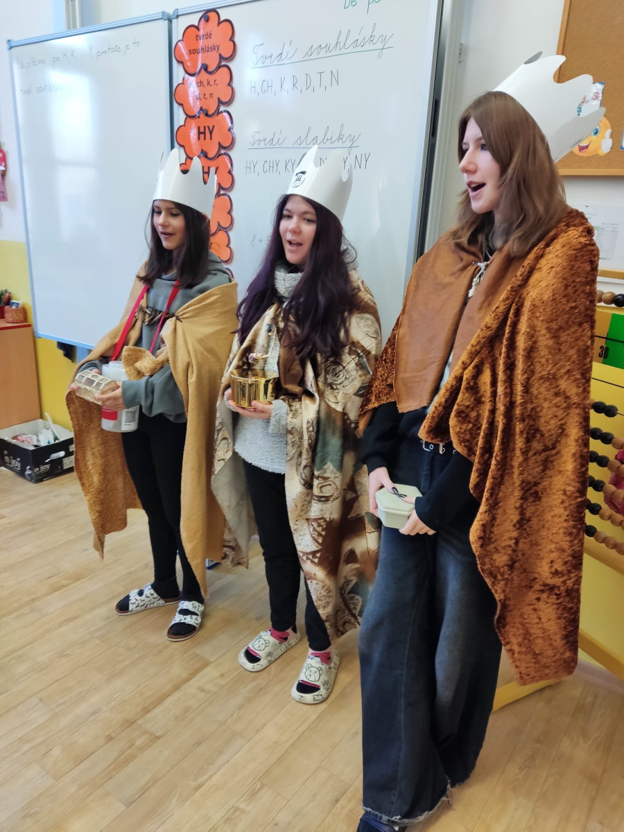 Na začátku ledna k nám opět dorazili Tři králové. Dětem ukázali dary, které kdysi přinesli Ježíškovi, vysvětlili význam nápisu K + M + B + 2026 a představili Tříkrálovou sbírku, do které se někteří žáci zapojili i mimo školu. Školou se nesla koleda „My tři králové jdeme k vám“ a na dveřích tříd i školy se objevilo tradiční požehnání: „Ať Kristus požehná tomuto domu!“.