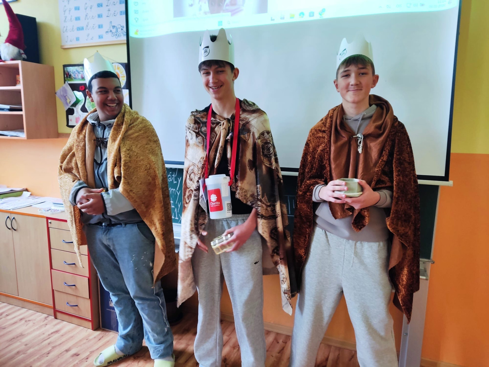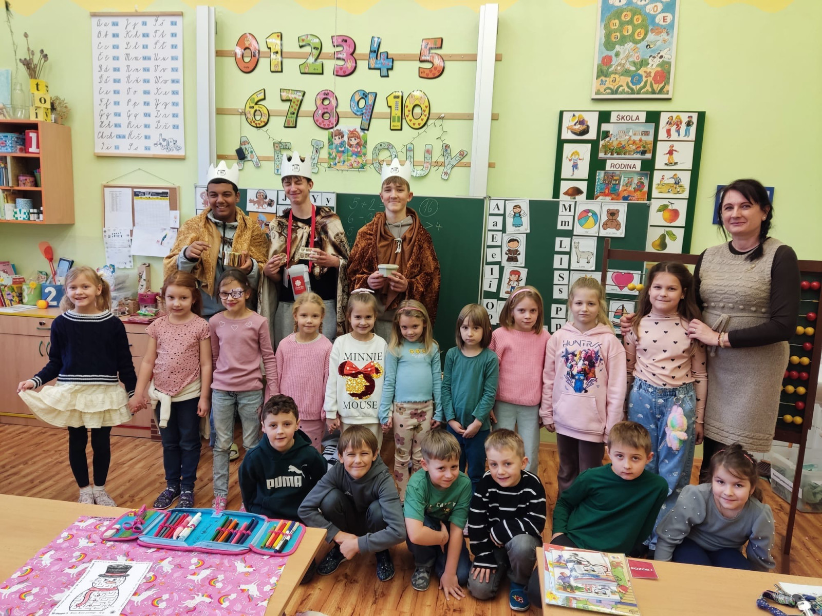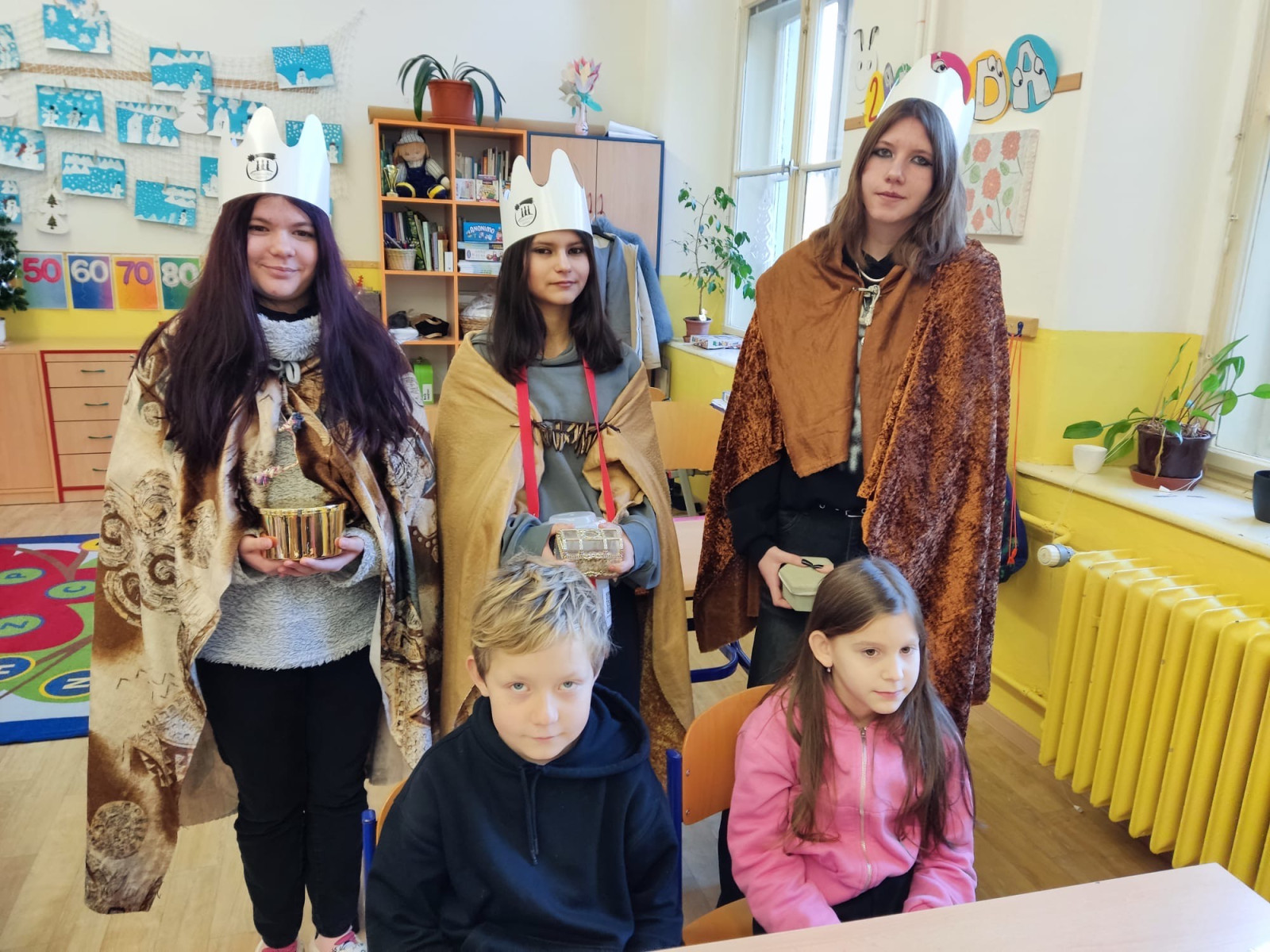 Na začátku ledna k nám opět dorazili Tři králové. Dětem ukázali dary, které kdysi přinesli Ježíškovi, vysvětlili význam nápisu K + M + B + 2026 a představili Tříkrálovou sbírku, do které se někteří žáci zapojili i mimo školu. Školou se nesla koleda „My tři králové jdeme k vám“ a na dveřích tříd i školy se objevilo tradiční požehnání: „Ať Kristus požehná tomuto domu!“.
