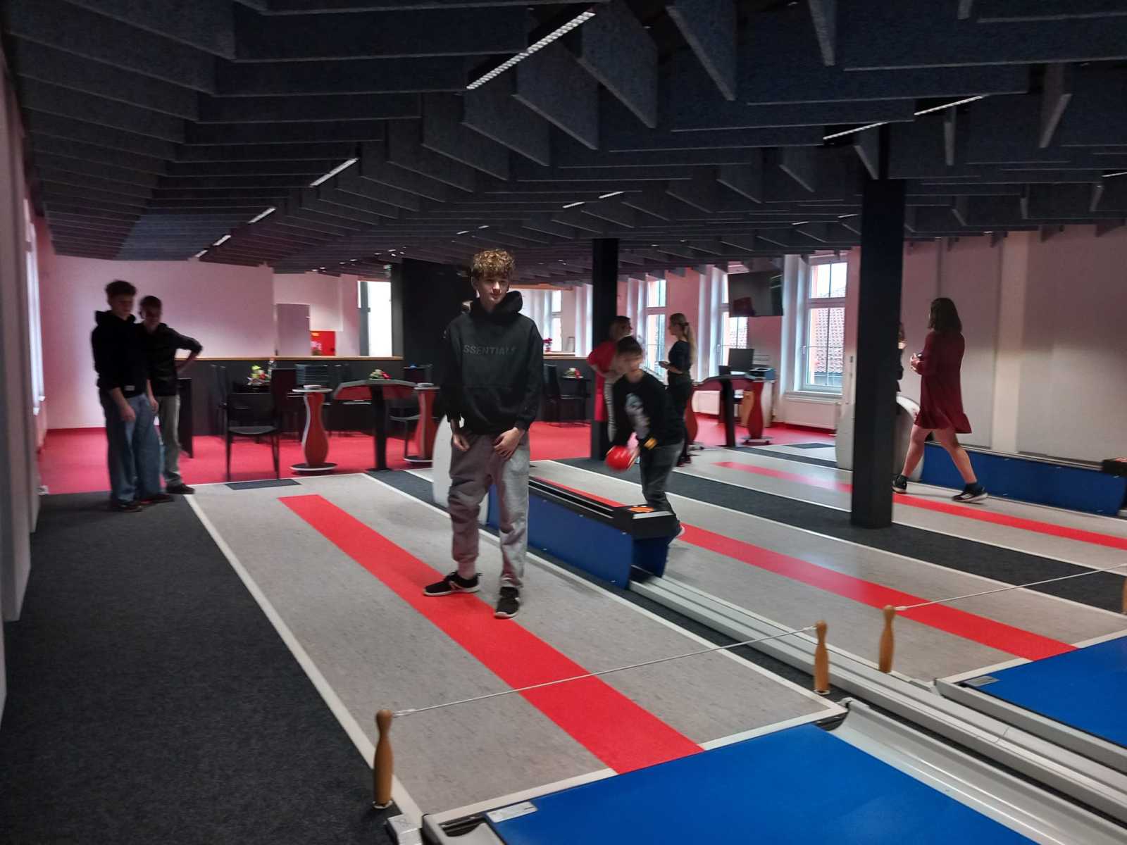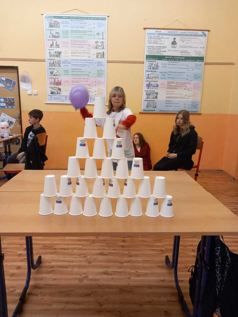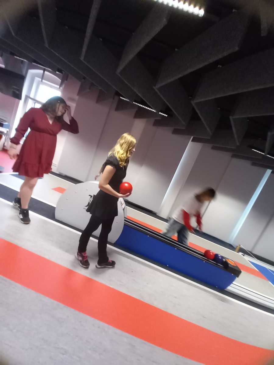 Poté jsme se vydali do Staré papírny, kde jsme si vyzkoušeli kuželky. Pro většinu žáků šlo o zcela novou zkušenost. Celá akce měla charakter teambuildingové aktivity, která přispěla k posílení vztahů a dobré atmosféry ve třídě.